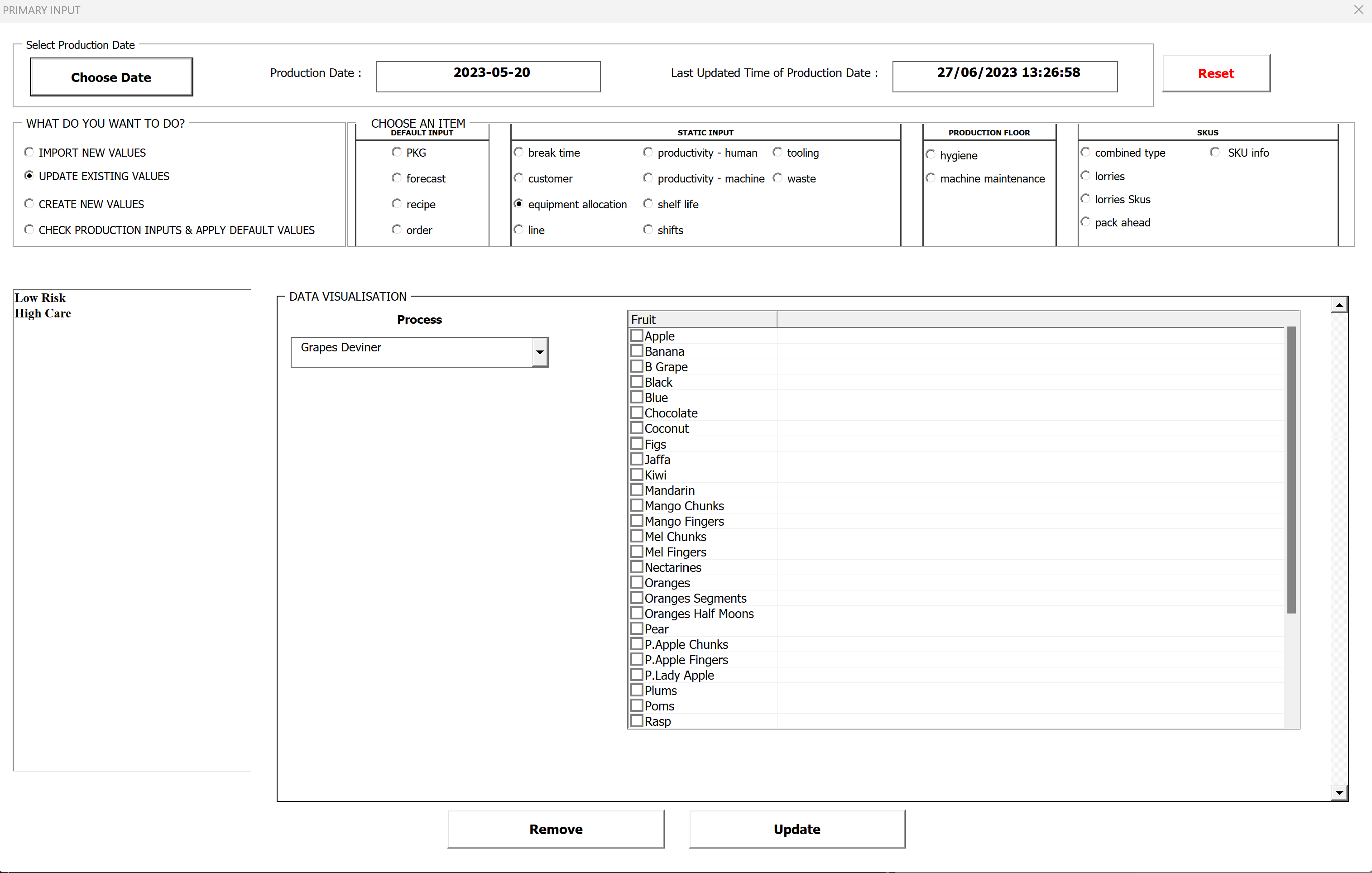Effortlessly import PKG files, orders, and previous production data through our user-friendly interface. Critical datasets can be manually updated, ensuring accuracy and up-to-date calculations.
